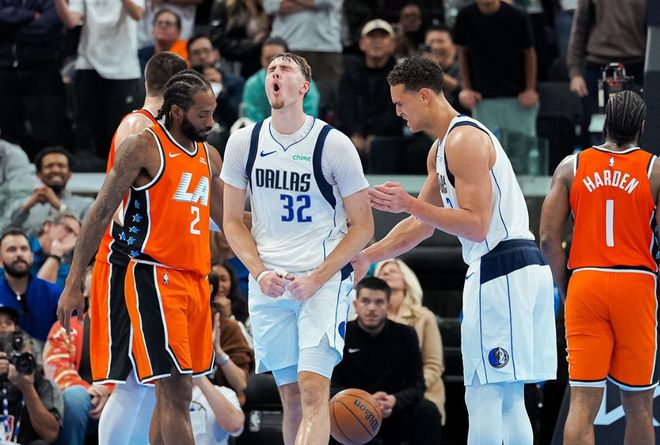 当然不能指望哈登防守端还要承担责任,但还有一个数据引人深思:上赛季哈登和伦纳德同时在场时,快船百回合能赢对手14.7分,特别是全明星周末过后,快船的净效率值是联盟前三!但本赛季哈登和伦纳德同时在场时,快船百回合输对手5.0分,大致等于球队净效率值(-5.3)。打热火第四节被弃用,当球队在小卡带领下疯狂追分时,哈登眼神空洞陷入沉思,没再关注球场动态。那一幕很容易让人联想起哈登在篮网效力时最后两周的情况,心不在焉,效率大幅下滑,缺乏斗志,这绝对不是哈登的比赛风格。